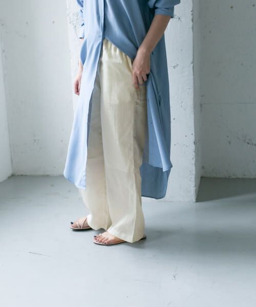 リラックスな雰囲気漂うイージーパンツが登場。落ち感のある生地は大人っぽさを引き上げてくれます。ウエストはオールゴム仕様で楽に穿けるのも嬉しいですね。広がり過ぎないシルエットはオーバーサイズのトップスやワンピースと好相性。同素材の袖タックブラウスとのセットアップもおすすめです。ベーシックなアイボリーに加え、差し色にぴったりなミントとオレンジブラウンをご用意しました。