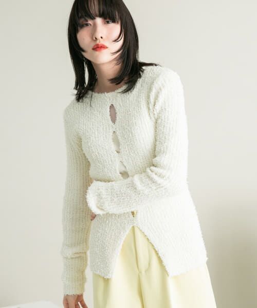 変形ネップが入ったパイル生地のような見え方が特徴のニット。前後2WAY仕様やレイヤードコーデを格上げする真ん中のホールデザインが魅力的。程良くフィットするシルエットで大人っぽく着られるのも嬉しいポイントです。