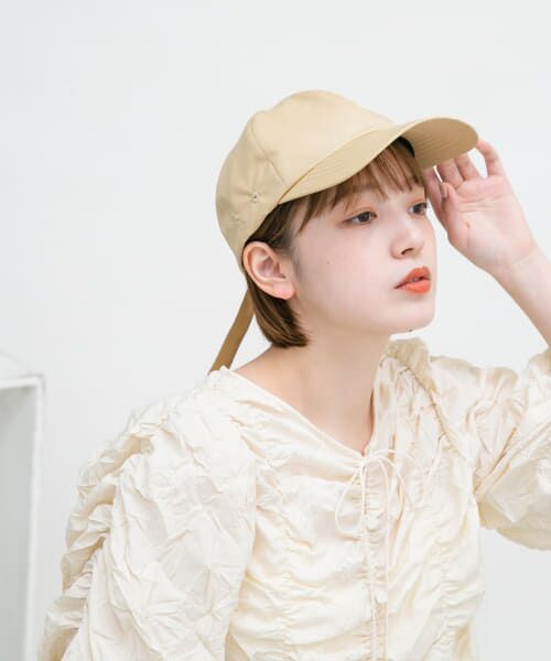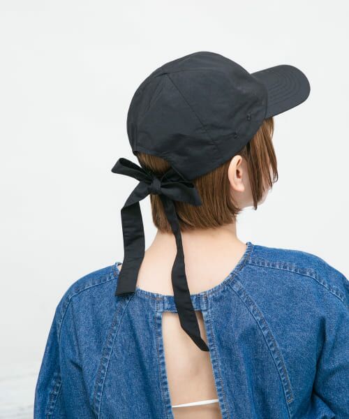 バックリボンが目を惹くナイロンキャップ。サイズ調整可能なデザインが◎