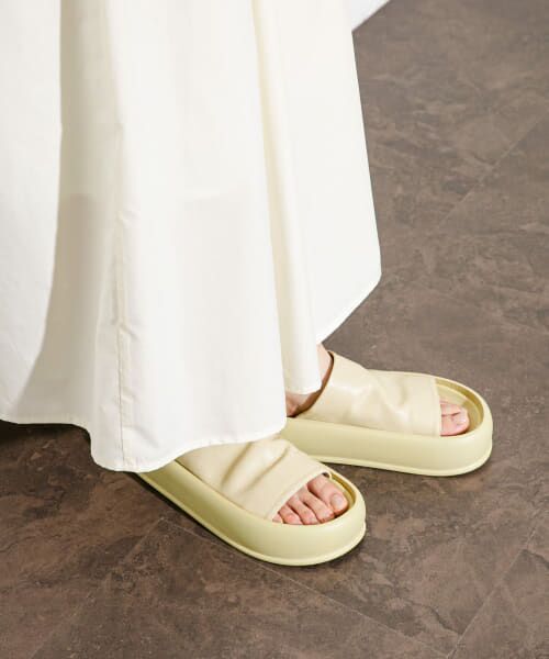 厚みのあるソールが目を惹くスライドサンダルが登場。2層になったかかと部分のデザインもポイントです。アッパー部分が柔らかく、見た目以上に穿きやすくなっています◎
