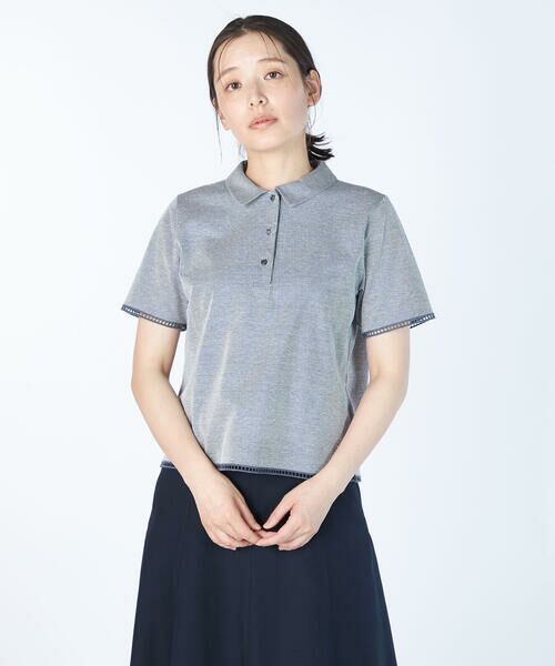 衿付きでポロシャツ風のルックに仕上げたカットソー。少し小ぶりの衿が上品さや女性らしさを印象付けます。裾と袖口にはハシゴレースをさりげなくセットしており、細部にまでこだわりが感じられるのもポイント。長すぎない着丈は合わせるボトムスを選ばず、パンツともスカートともバランス良くまとめられます。