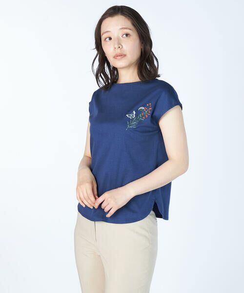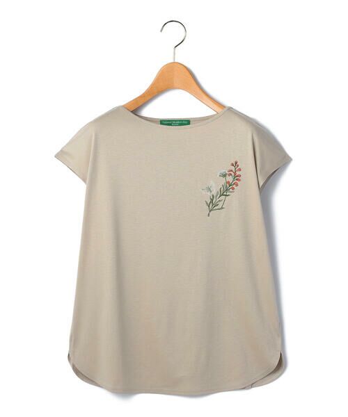 胸元のボタニカルモチーフの刺繍がエレガントなカットソー。仄かな光沢のあるジャージー素材が、着こなしをエレガントに映し出します。肩が隠れるフレンチスリーブと、露出の少ないボートネックで、大人らしい落ち着きをプラス。シンプルなスタイリングでも洗練度高くまとまるアイテムです。ジャケットなどのインナーとしても活躍。