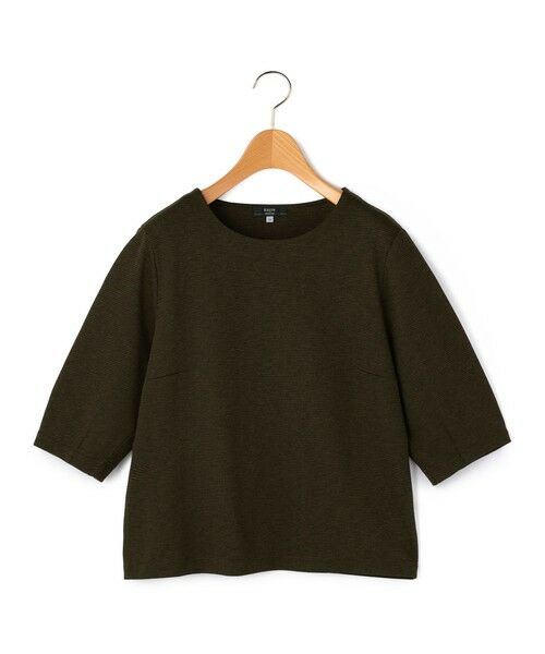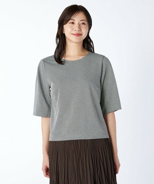 細かな千鳥格子柄がさりげなく華やかなデザインの7分袖カットソー。シンプルながら立体感のあるパターンが美しいシルエットの一枚。丸みのあるボリューム袖が今年らしいデザインポイント。お手持ちのボトムを合わせるだけで、スタイリッシュでシックなコーディネートが完成するエレガントなアイテムです。