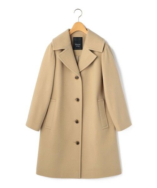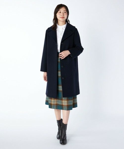 シングル4つボタンのコート。ペコラムという国産のこだわり素材で仕立て、フェルトのようにやわらかな肌触りのメルトン仕上げをした保温性にすぐれた生地で、秋冬シーズンにぴったり。大きめの襟が印象的なシンプルなデザインの一枚。お出かけにはもちろんオフィスシーンにもマッチするエレガントなアイテムです。