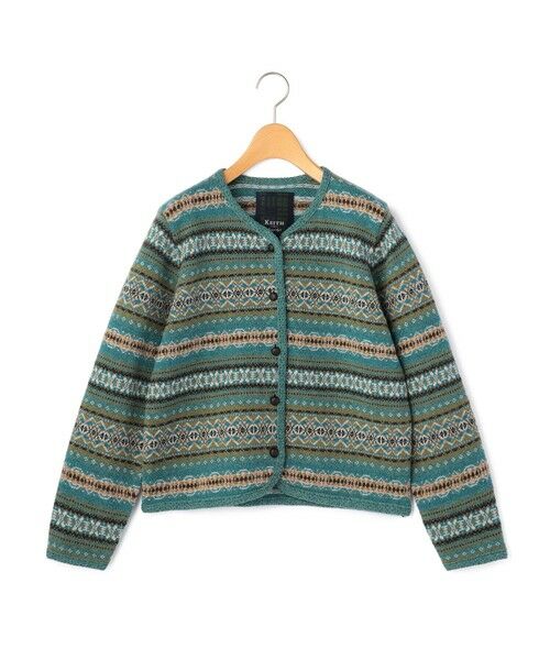 毛混合であたたかな肌触りのニットカーディガン。幾何学模様が段になった華やかなフェアアイル柄が目を惹くデザイン。カラフルな配色でコーディネートのアクセントに最適。丸い裾がおしゃれなシルエット。フロントのコロンとした立体的な丸いボタンもおしゃれなデザイン。デイリーからお出かけまで幅広く活躍するアイテムです。※商品画像はサンプルを使用しているため、実際の商品と色味などの仕様が異なる場合がございます。予めご了承ください。model:T.172/B.83/W.59/H.87着用サイズ:38