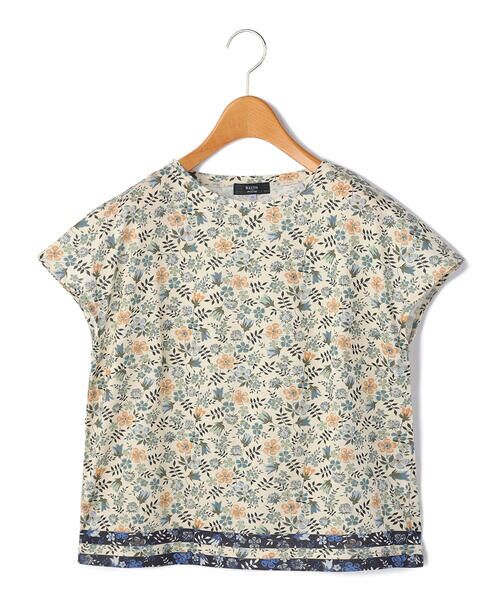 心が華やぐようなフラワープリントを用いたカットソー。裾に別色の花柄ラインを添えることで、メリハリのあるデザインに仕上げています。ジャストなサイジングと短めの着丈で、着こなしのバランスをキープ。裾を絞っていないため、腰まわりがすっきり見えるのも特徴です。パンツに合わせても女性らしいスタイリングが決まる1点です。
