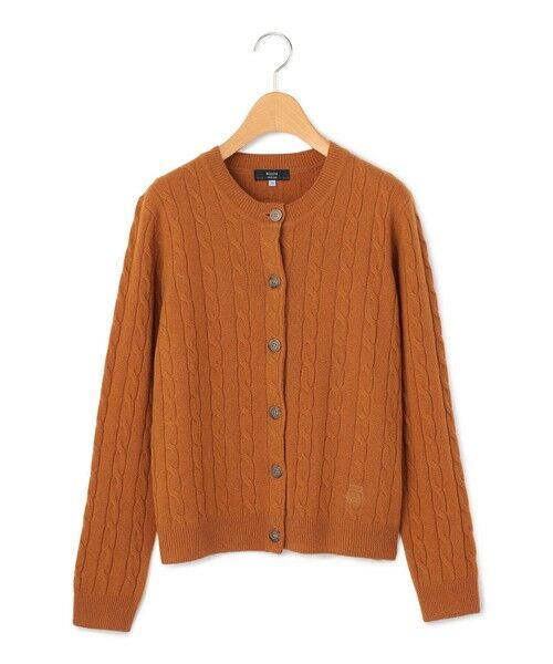 ぬくもり漂う表情が魅力のケーブル柄のニットカーディガン。左前裾にはマークの刺繍のワンポイントをさりげなくあしらっています。短め丈のコンパクトなシルエットやラウンドネックが女性らしさをプラス。ロゴ入りのボタンを取り入れるなど細部にまでこだわっています。フロントを留めてプルオーバー風に着ても素敵です。※商品画像はサンプルを使用しているため、実際の商品と色味などの仕様が異なる場合がございます。予めご了承ください。model:T.172/B.83/W.59/H.87着用サイズ:38