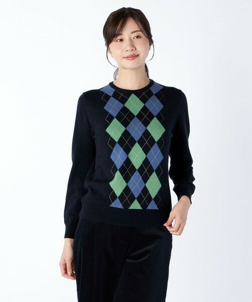 メリハリのあるカラーで着映えするアーガイル柄ニット。ベーシックでいて存在感のある着こなしを楽しみたい日におすすめです。シルエットにほど良いゆとりがあり、リラックスして着こなせるのも魅力です。※商品画像はサンプルを使用しているため、実際の商品と色味などの仕様が異なる場合がございます。予めご了承ください。model:T.172/B.83/W.59/H.87着用サイズ:38