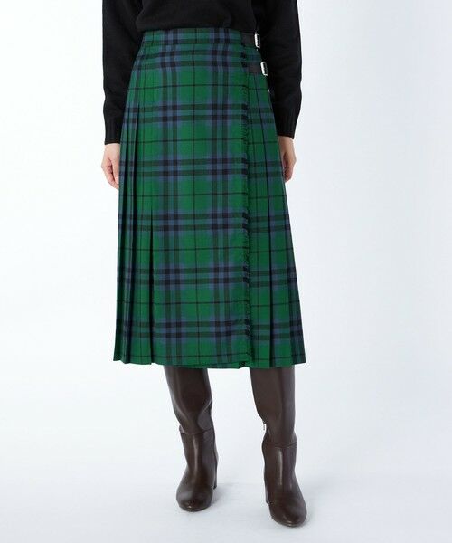 由緒正しいタータンチェック柄が正統派のブリティッシュスタイルを叶えてくれるスカートです。落ち着いたミディ丈で、大人の女性に似合うシルエットになっているのが特徴。サイドにダブルベルトを配したラップ風のディテールとプリーツがエレガントな印象を与えます。流行を問わず長くお召しいただける1着です。