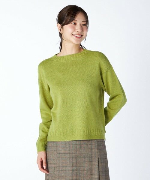 ウールをブレンドしたニットで編みたてた長袖ニットプルオーバー。襟元や袖口、裾の編み模様に変化をつけることで、デザインにメリハリをプラスしています。ドロップショルダーのディテールで、肩の力が抜けたリラックス感を演出。スカート・パンツ、どちらともコーディネートしやすい着丈にこだわった1枚です。※商品画像はサンプルを使用しているため、実際の商品と色味などの仕様が異なる場合がございます。予めご了承ください。model:T.172/B.83/W.59/H.87着用サイズ:38
