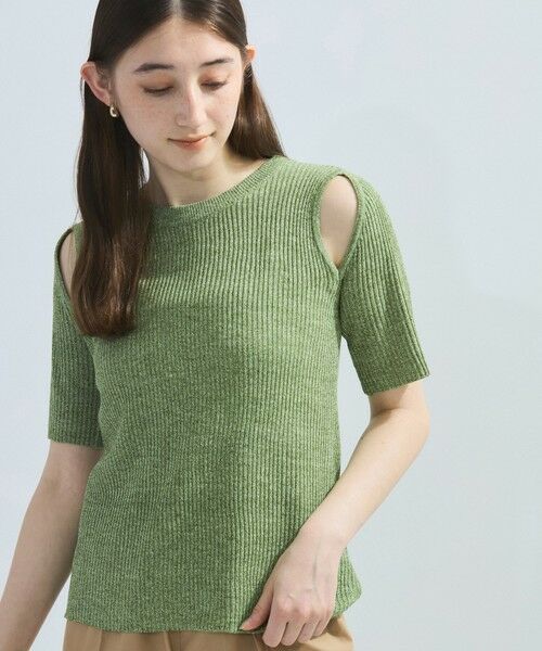 ショルダーラインにスリットを入れたスキンコンシャスなニットトップスです。