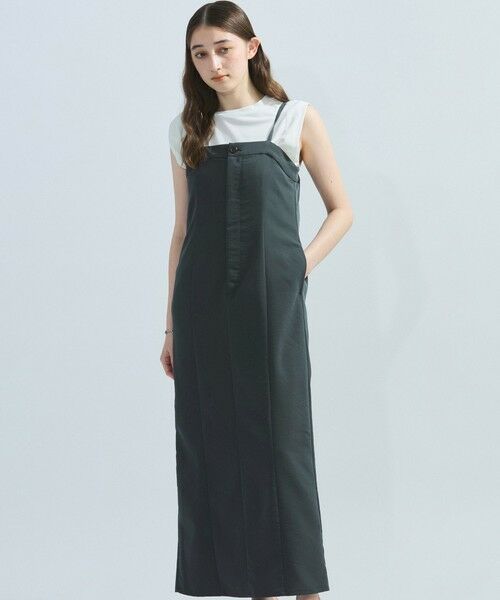 ビスチェ風バストラインのジャンドレはフロントワンボタンがアクセントになっており、コンパクトな身頃にストンと落ちるシルエットが大人なデザインです。