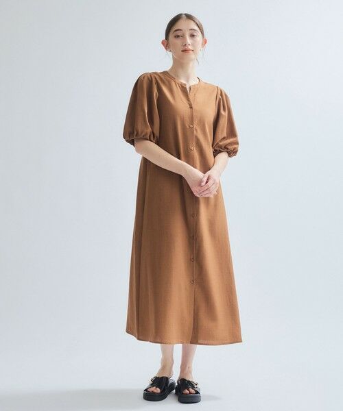 裾に向かって緩やかに広がるAラインシルエットのシャツタイプワンピースです。