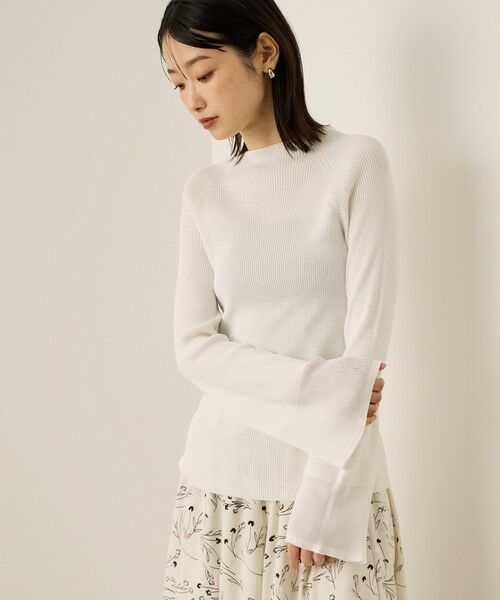 モックネックでからだに寄り添うシルエットなので、一枚着としてはもちろんですが、レイヤードインナーとしてのご着用も可能で、ワイドパンツやフレアスカートなどとのコーディネートがおすすめのアイテムです。