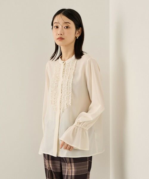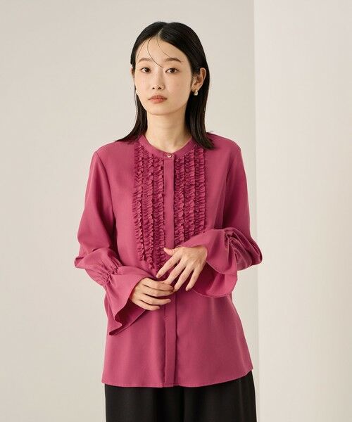 ジョーゼット素材を使用した比翼仕立てのフリルデザインブラウスです。