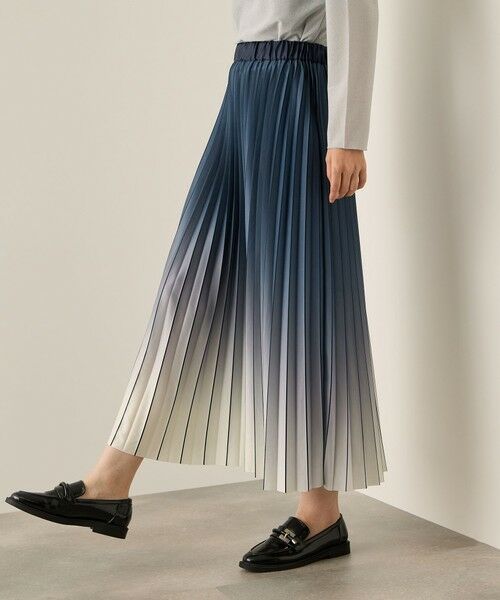 まるで絵画のようなグラデーションが知的で印象的なプリーツスカートは、圧倒的な存在感を放ちます。