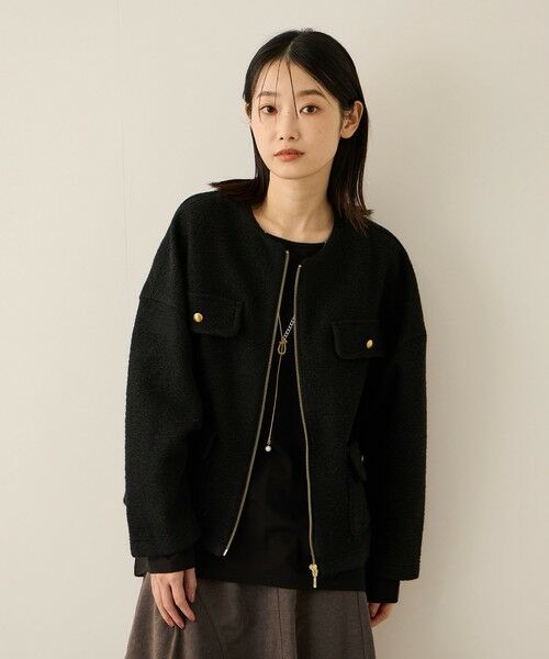 ウエストはストンと落ちるシルエットなので、フレアスカートやワイドパンツなどとあわせていただいてもバランスよくご着用いただけます。