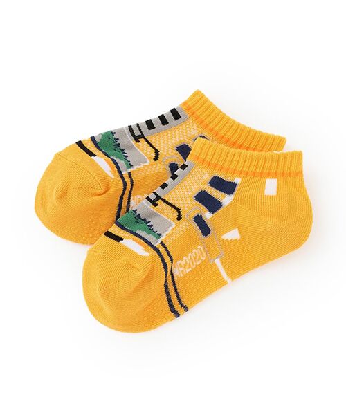 足元をさりげなく彩ってくれるスニーカーインソックスです。 乗組員は恐竜で、色ごとに異なる車種になっています。 赤は消防車、黄とエメラルドグリーンは電車、黒はパトカーのデザイン。 メッシュ編みで清涼感をアップしました。 足裏にすべり止めプリントを備えているのも魅力です。