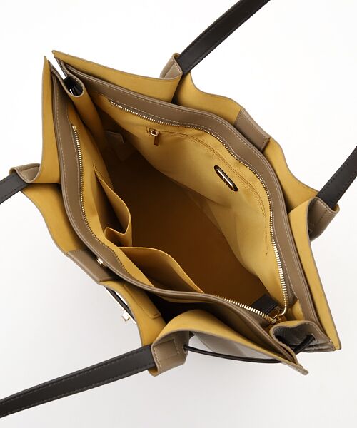内側は3層構造になっており、ポケットも付属しているため、A4書類やファイルなどの大きめの物からスマートフォンやハンカチ・リップなどの小さめの物まで整理して収納できます。