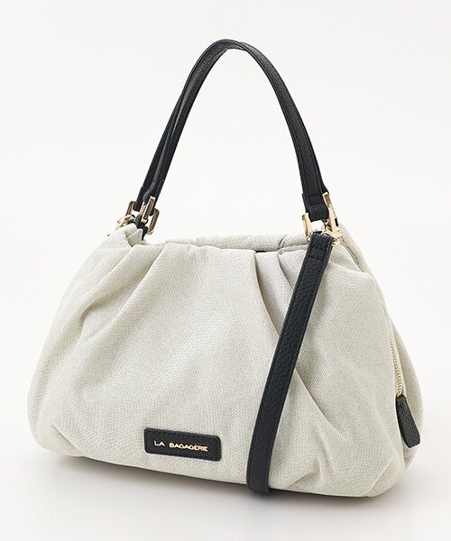 リネン調のポリエステルを使用した、ナチュラルテイストなタックトート。