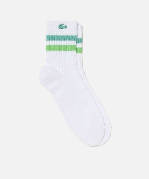 足元からスポーティなフィーリングをプラスバイカラーの2ラインがスポーティなフィーリングを放つアメリカンリブソックス。カラフルなワニロゴ刺繍も目を引くアクセントに。コットン×ポリエステルのブレンドニット素材が適度なフィット感に仕上げ、足底のパイル地切り替えがクッション性をプラス。一日中快適な履き心地を叶えてくれるアイテムです。クシュッとした表情が人気のアメリブソックス・コットン×ポリエステルのブレンドニット素材・トレンドのアメリブデザイン・トップに配したスポーティーなバイカラーボーダー・豊富なカラーバリエーション・足底はクッション性の高いパイル地切り替え