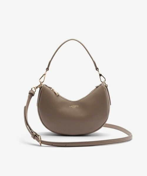 小ぶりながら存在感を放つ、ハーフムーンシルエットのショルダーバッグ・しなやかな風合いのスプリットグレインレザー・アクセサリー感覚で楽しめるコンパクトサイズ・エレガンスを引き立てるゴールドの箔押し&メタルパーツ・ショルダースタイルとクロスボディの2WAY仕様・内側にジップポケット付きで小物を安全に収納L24 x H13 x D7cm