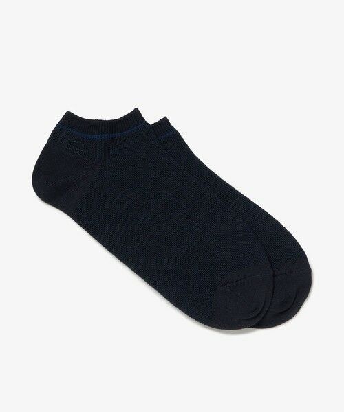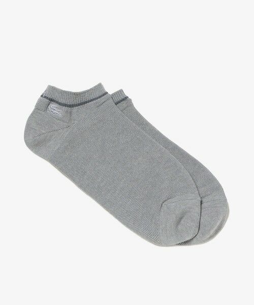ラコステのアイコン生地を使用した鹿の子地ショートソックス・ブランドを象徴する鹿の子素材・シューズを選ばず合わせやすいワントーンカラーリング・同色のワニロゴでさりげないアクセント・豊富なカラーバリエーションで幅広いスタイリングに対応・25-27cm