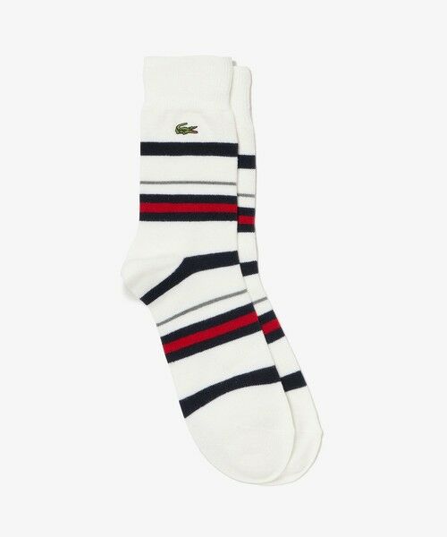 カジュアルなルックスに高級感を備えるウールブレンドボーダークルーソックス・機能性の高い各種化繊素材にウールをブレンドしたニット素材・快適なフィット感を演出する履き口のリブニット切り替え・クラシカルなボーダーパターンで足元にアクセントをプラス・豊富なカラーバリエーションで幅広いスタイリングに対応・25-27cm