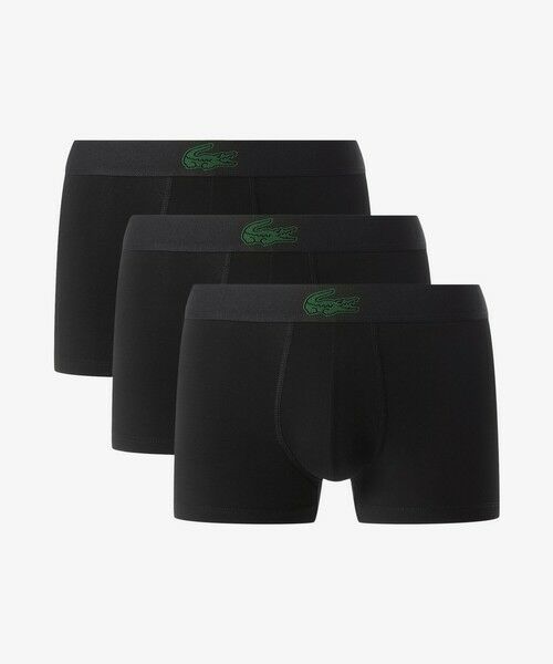 クラシックなウエストバンドワニロゴが映える3枚セットのストレッチコットントランクショーツセット・コットン×エラステンのストレッチジャージ素材・快適なサポート感を備えたレギュラーフィットのカッティング・ウエストバンドに配したコントラストカラーのワニロゴジャカード・デイリーに活躍する、洗い替えに便利な3枚セット