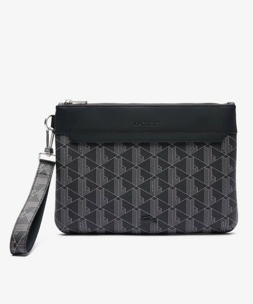日常にエレガンスを携えるモノグラムクラッチバッグ・耐久性に優れたグレイン加工のシンセティックレザー・モノグラム柄と無地レザーのコンビデザイン・取り外し可能なストラップ付き・内部にフラットポケットを配置・ジップ下にブランドネームロゴをさりげなく刻印L31.5 x H22 x D2.5 cm