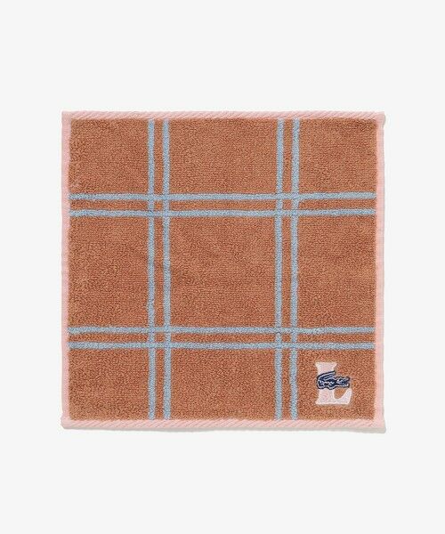 ベーシックなチェック柄にイニシャル&ロゴをあしらったミニタオル・吸水性に優れたコットンパイル素材・ベースにクラシックなチェック柄をデザイン・コーナーにLモチーフとワニロゴパッチを組み合わせたアクセント・ユニセックスなカラーリングでデイリーに活躍