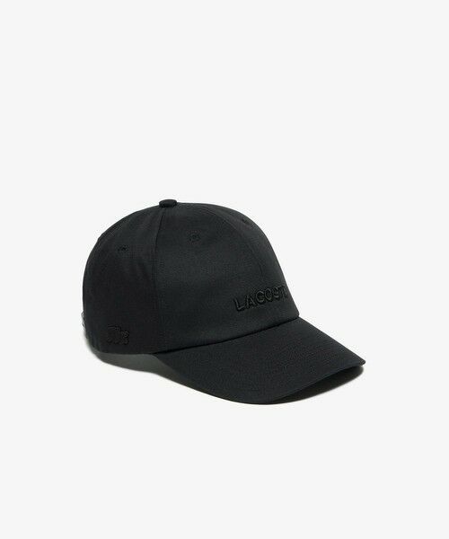 立体刺繍の同色ブランドネームロゴが映える6パネルキャップ・カジュアル感が心地よいコットンツイル素材・シンプルなブランドネームロゴを立体的な同色刺繍でフロントに・クラウンサイドに同色のワニロゴパッチ・バックアジャスタ付き・サイズ:58cm