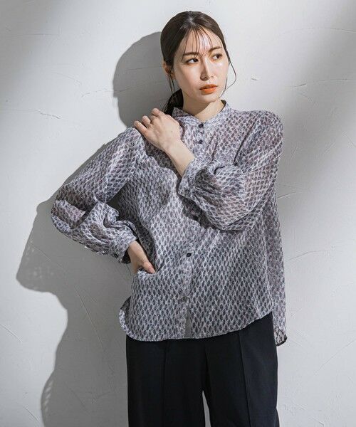 関連ワード:la.f… ラ エフ 2025春夏 2025SS 春 春服 ブラウス ポリエステル 長袖 格子柄 ジャカード バンドカラー インナー シンプル フォーマル モード マニッシュ