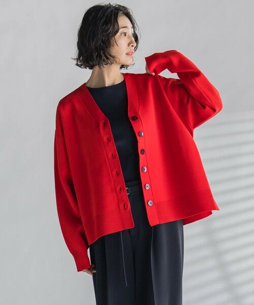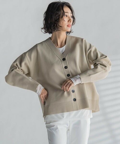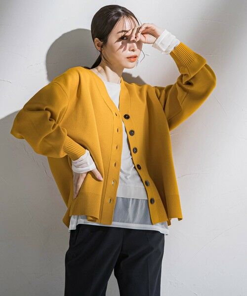 フォルムが出る地厚の編地で仕立てながらも、糸自体の嵩高性と軽量感で着心地も兼ね備えた一枚。