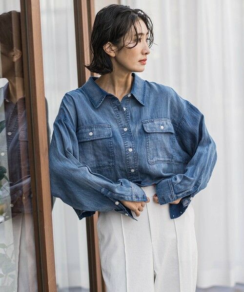 関連ワード:la.f… ラ エフ レディース 新作 大人コーデ シンプル フォーマル モード マニッシュ 2025春夏 2025SS 春夏 春物 春服 シャツ コットン デニム ショートレングス