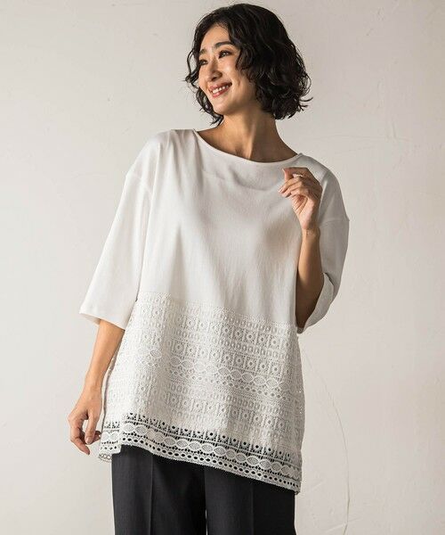 裾のケミカルレースがキャッチーでアクセントになるカットソープルオーバー。