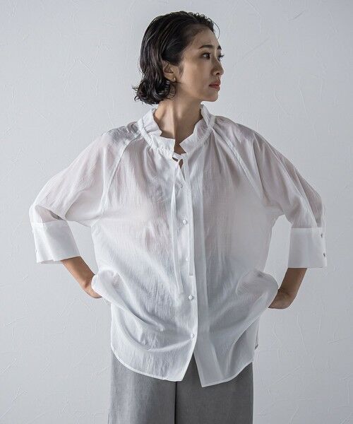 清涼感のあるトリアセテート×コットンのローン素材で仕立てた、軽やかな着心地のブラウス。