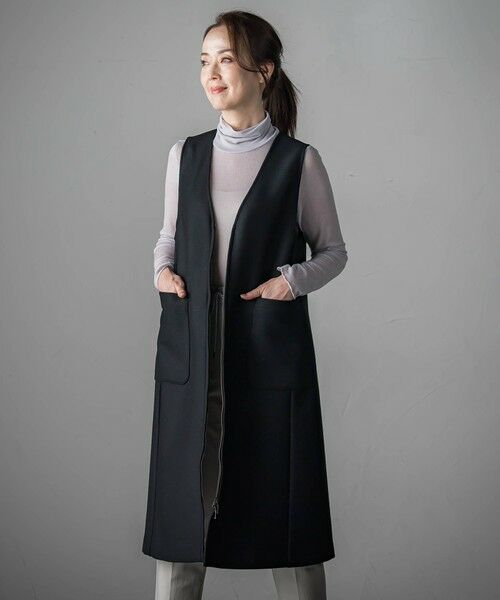 ジップアップ仕様で着脱も軽やかに、レングスを短めに設定することで、ジャンパースカートとしてはもちろん、ジレのように羽織るスタイリングも楽しめます。