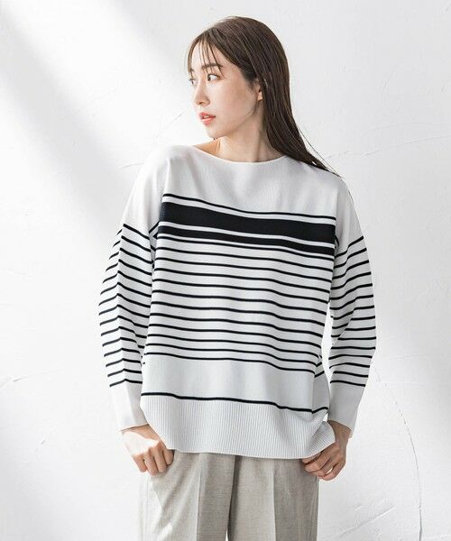 関連ワード:la.f… ラ エフ 2025春夏 2025SS 春 春服 ニット コットン ポリエステル クルーネック ボーダー 長袖 シンプル フォーマル モード マニッシュ ジャストサイズ ホールガーメント ストレスフリー 気温10度~15度におすすめ