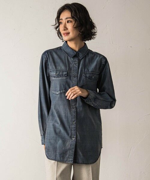 シアー感が夏らしく清涼感のある薄手デニム素材のシャツ。