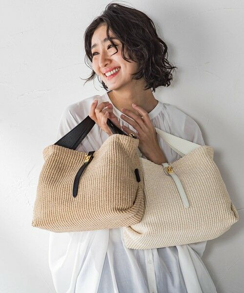 関連ワード:la.f… ラ エフ レディース 新作 大人コーデ シンプル フォーマル モード マニッシュ 2025春夏 2025SS 春夏 春物 春服 トートバッグ ラフィア調 母の日