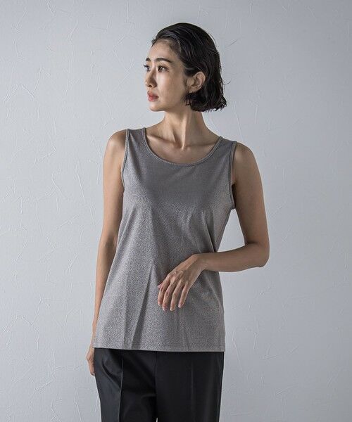 ほんのりラメがきらめくベア天竺素材で仕立てた、大人のためのタンクトップ。