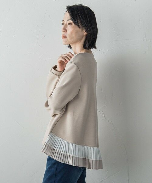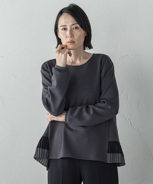 裾に配色プリーツがドッキングされたダンボールプルオーバー。