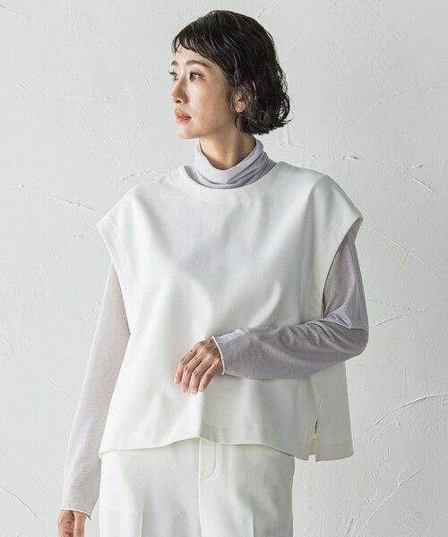 プルオーバーとしてシンプルに、または前を釦あきにして羽織り感覚で使えるデザインです。