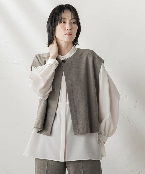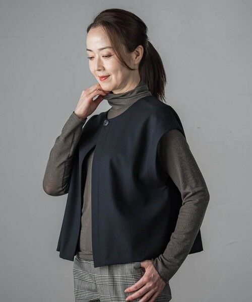 前後どちらでも着用できる2way仕様のクロップドジレ。