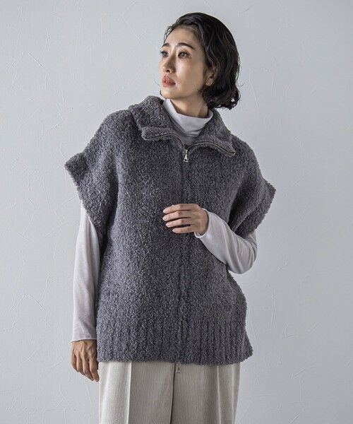 リラックスシルエットのジレで、いつものコーディネートに重ねるだけでスタイリングが完成します。
