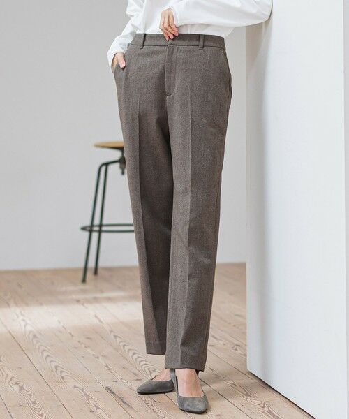 センタープレスを効かせたストレートシルエットは、脚をすっきり美しく見せつつ、きちんと感をプラス。
