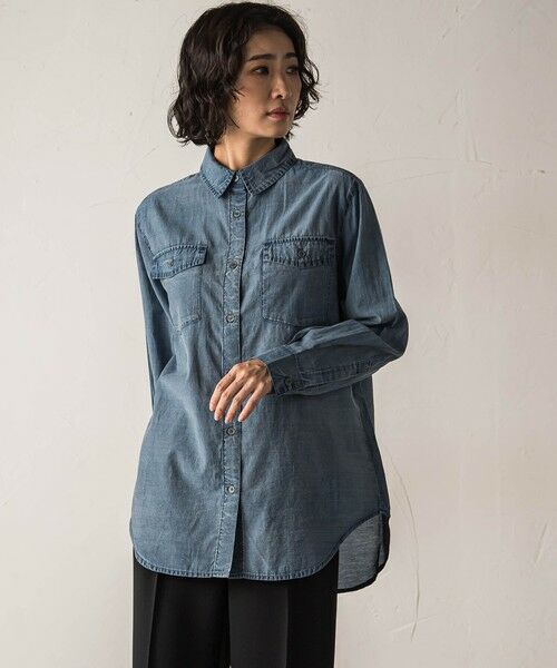 シアー感が清涼感のある薄手デニム素材のシャツ。