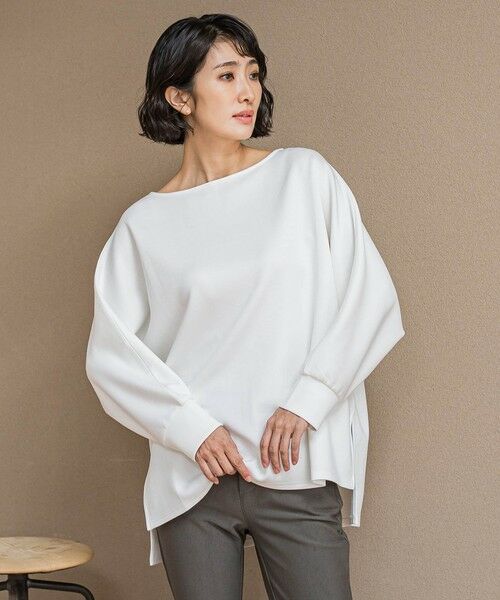 程よいハリと厚みがありながら軽く、体のラインを拾わずすっきり見え。