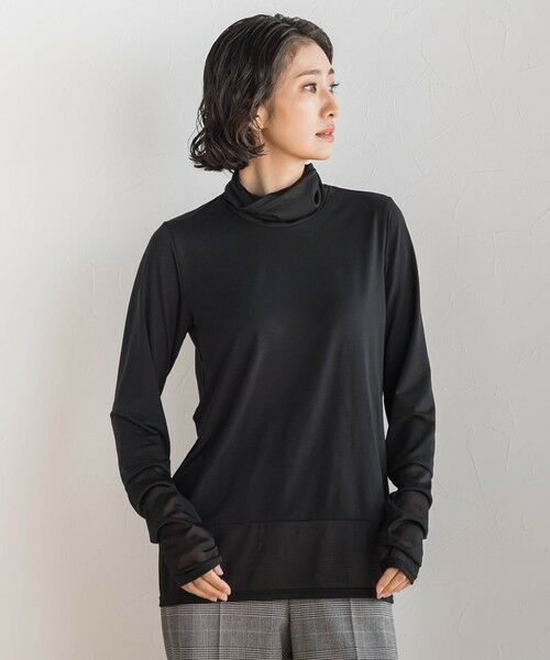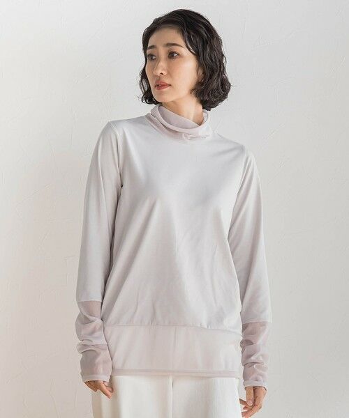 襟・袖口・裾にシアー素材をあしらった、インナーハイネックのカットソー。